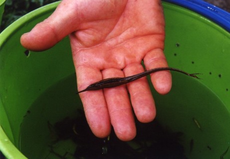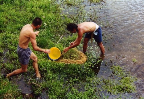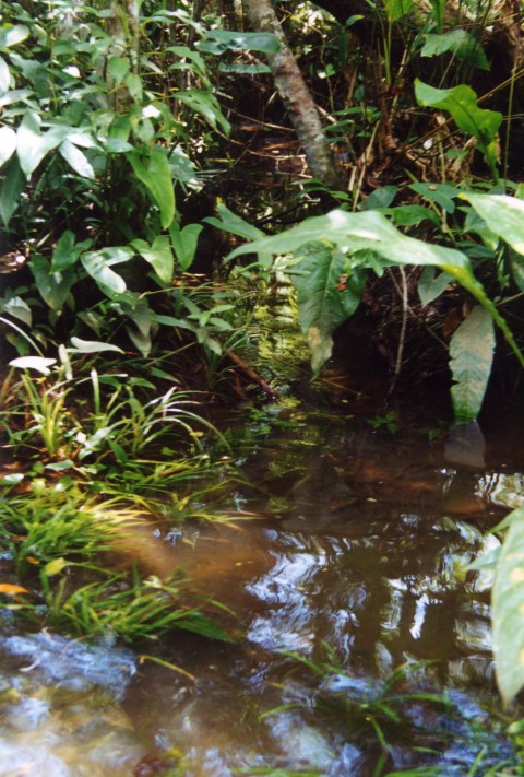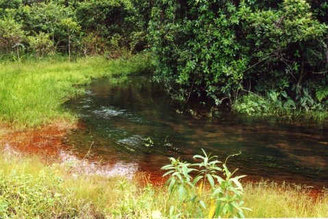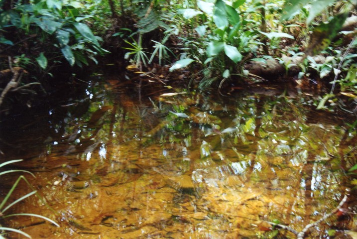 Onze volgende rivier liep langs een moerasgedeelte. In het open gedeelte was er schoon en helder water met een bodem van zand - kiezels en kleine rolstenen. De diepte was ca.15 cm. De waterwaardes, temp. 25 gr., microsymen 10 en een pH van 6.4 Met een vangnet met drijvers werd in korte tijd een aantal Corydoras metae gevangen. Dit net lag met lood op de bodem en drijvers zorgde voor een soort fuik. Met een lange stok werden de Corydorassen tussen de stenen opgejaagd het net in. Een handige manier om grote aantallen te vangen.
