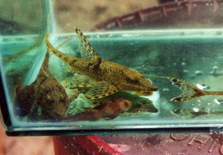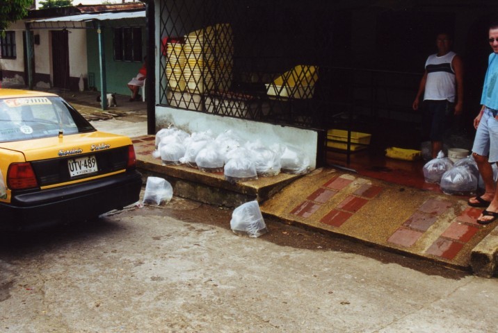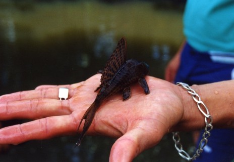Vooral Sturisoma’s werden in groten getale aangetroffen. Alleen de bouw van deze vissen was anders dan we thuis in ons aquarium hebben. Het leek ons dat het vinnenstelsel korter was. De borst en rugvinnen waren aanzienlijk kleiner dan bij de bekende soorten. Onder water was nog iets aparts. Deze beesten hadden in de stroming bijna witte ogen. Thuis in ons aquarium heb ik dit niet meer gezien.Als je een week in een plaats bent, en met de plaatselijke bevolking leeft heb je snel contact met de lokale bevolking.De groenteboer naast ons kwam elke avond even buurten en verschillende mensen uit de straat zag je elke avond even langs komen om te horen en zien hoe het ons was vergaan de afgelopen dag.Als we dan in de boeken aan het zoeken waren naar wat we zoal gevangen hadden zag je ze denken.Helemaal uit Europa voor wat van die kleine visjes. O ja, Holland ligt in de U.S.A., maar als je Johan Cruyff noemt dan wisten ze gelijk waar Holland lag.Op de laatste dag we moesten erg vroeg op om de vissen te verpakken die we zouden meenemen. Toen alles was ingepakt hadden we meer dan 30 zakken met vissen. (alles was met zuurstof verpakt) Dit alles moest een autorit van 12 uur doorstaan.Omdat we een telefoontje kregen van onze Suttoni visser besloten we een andere weg te nemen, om toch nog aan deze vissen te komen. Maar bij aankomst wou hij eerst geld en dan ging hij de vissen halen. Daar trapte wij dus niet in en vervolgde onze reis.