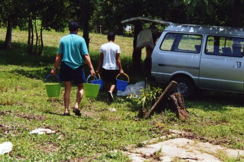 Onderweg nog even gestopt bij een grote plas. Hier troffen we tot onze verbazing Messing tetra`s aan. Er zwommen grote scholen van deze vissen, maar een klein gedeelte had de kleur van messing. Men vertelde ons dat dit door de natuur wordt geregeld.
