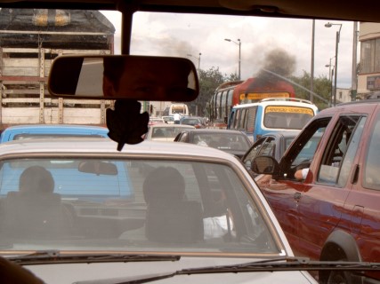 Maar aan alles komt een eind en om 15.30 (plaatselijke tijd) stonden we op het vliegveld van Bogota en toen begon de algemene controle van alles wat we bij ons hadden. In dit land zijn ze gek van controles. Alles moest uit de koffers en ook lichamelijk werden we goed nagekeken. Dit duurde ongeveer 90 minuten toen konden we eindelijk onze vriend Bruno begroeten. Nadat alles was ingeladen met veel pijn en moeite konden we op weg gaan naar de finca. De autorit duurde ongeveer 1uur en je kunt er geen voorstelling van maken hoe het verkeer in Bogota zich gedraagt. Op de finca aangekomen hebben we eerst maar een koel biertje genomen. Hier zouden we de eerste drie dagen verblijven om aan het klimaat te wennen.