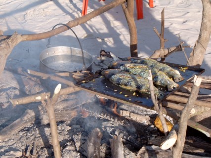 Nadat we voor voldoende eten en drinken hadden gezorgd hebben we ons maar niet meer op de boot laten zien,opdat de reparatie snel kon worden gedaan. De volgende ochtend om 5 uur wakker en geradbraakt. Dat was even wennen in een hangmat slapen met een stuk of vijf aggregaten die de hele nacht stonden te draaien. Dit geen tweede keer weer, dus varen met die hap.